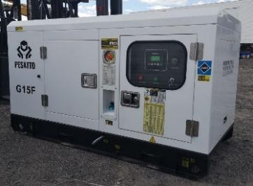 Serie PESG15F062502, 127/220 V, tablero de transferencia, 60 Hz, trifásica, 1800 RPM, 49.2 A, panel de control electrónico, motor FAW 4 cil. diésel, peso 630 kg, medidas 180x90x106 cm.